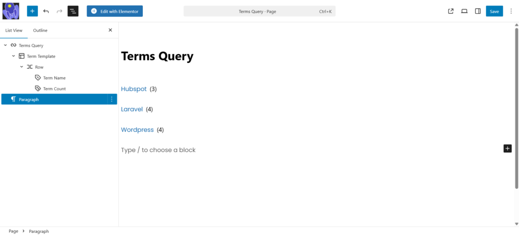 The new Terms Query block works similarly to the Query Loop block but displays taxonomy terms instead of posts.